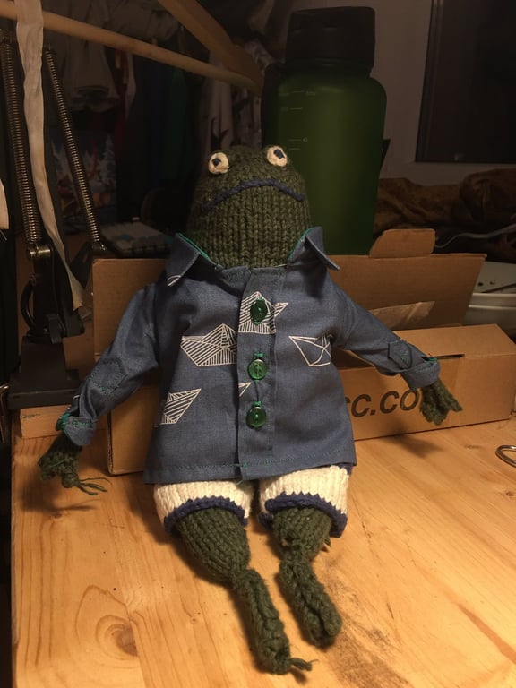 Perhaps the most adorable Simon to date, this shirt was made for a FreeSewing user's baby frog, Schorsch.